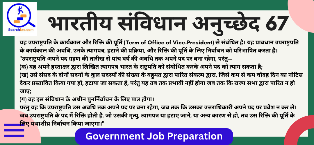 3. अनुच्छेद 67 के प्रमुख उपखंड: अनुच्छेद 67 कई महत्वपूर्ण पहलुओं को कवर करता है