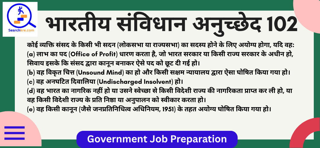 अनुच्छेद 102 की मुख्य विशेषताएं
