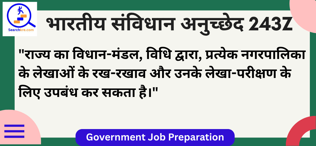 संबंधित प्रावधान: अनुच्छेद 243ZR: मौजूदा विधियों की निरंतरता। अनुच्छेद 243I: पंचायतों के लिए विशेष क्षेत्र। अनुच्छेद 243Y: नगरपालिकाओं के लिए विशेष क्षेत्र।
