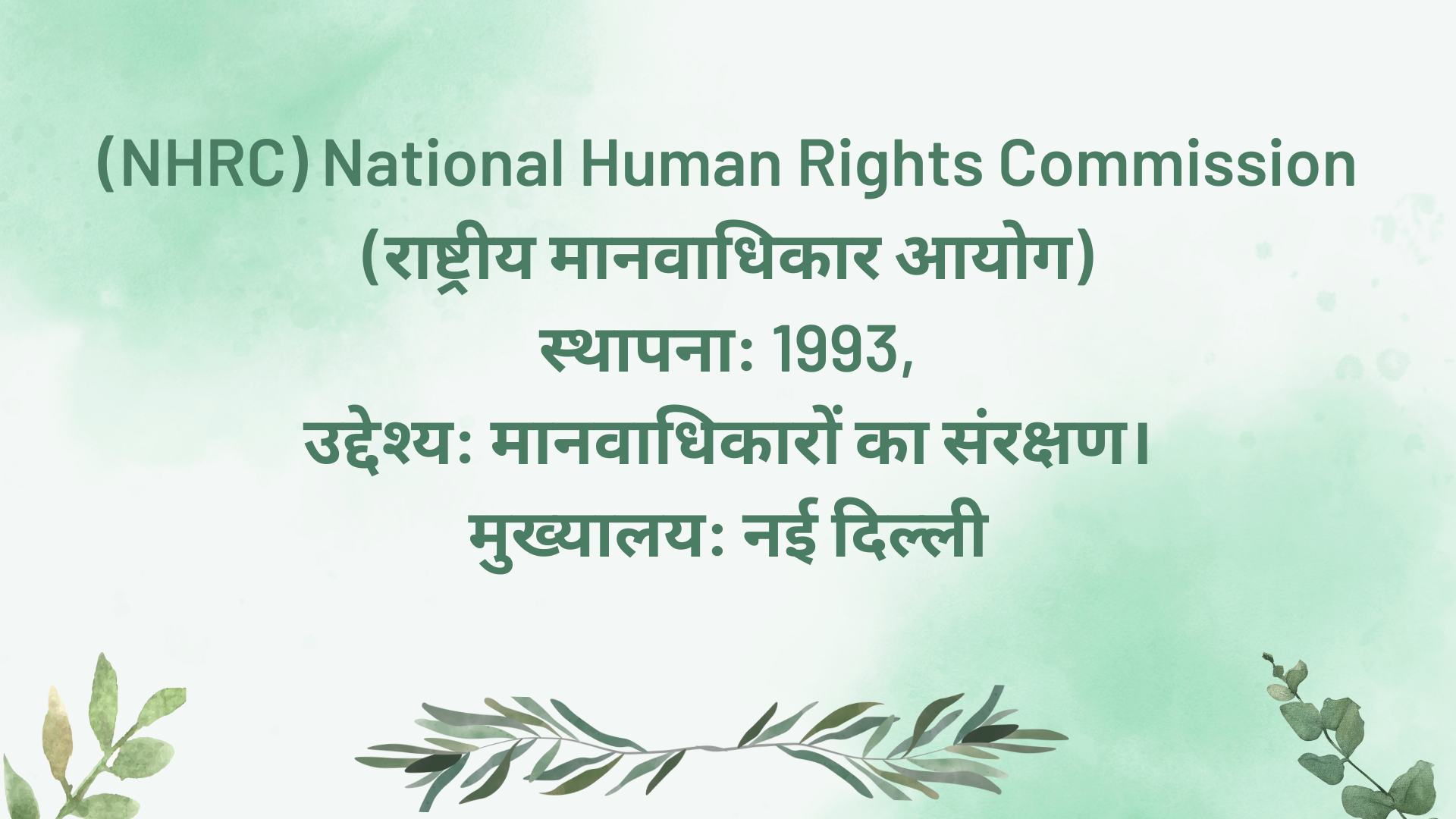 स्थापना: 1993, उद्देश्य: मानवाधिकारों का संरक्षण। मुख्यालय: नई दिल्ली