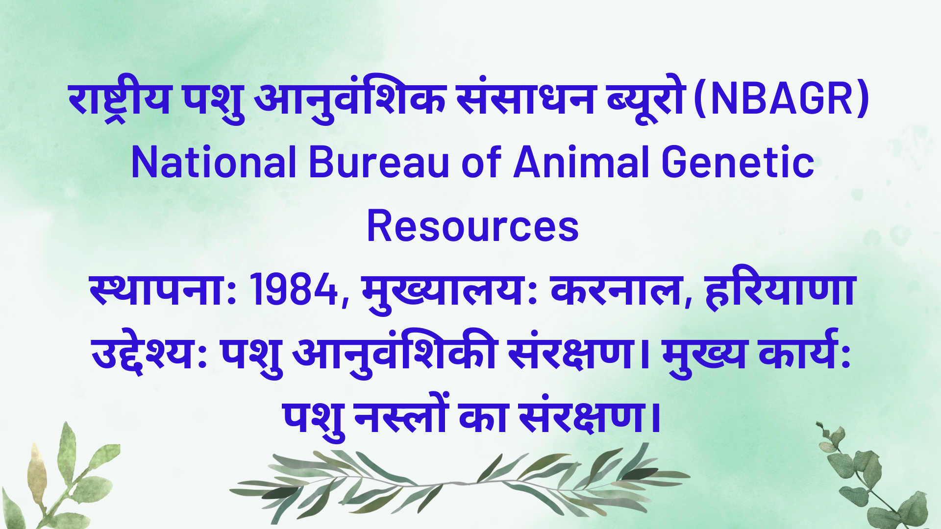 राष्ट्रीय पशु आनुवंशिक संसाधन ब्यूरो (NBAGR) National Bureau of Animal Genetic Resources