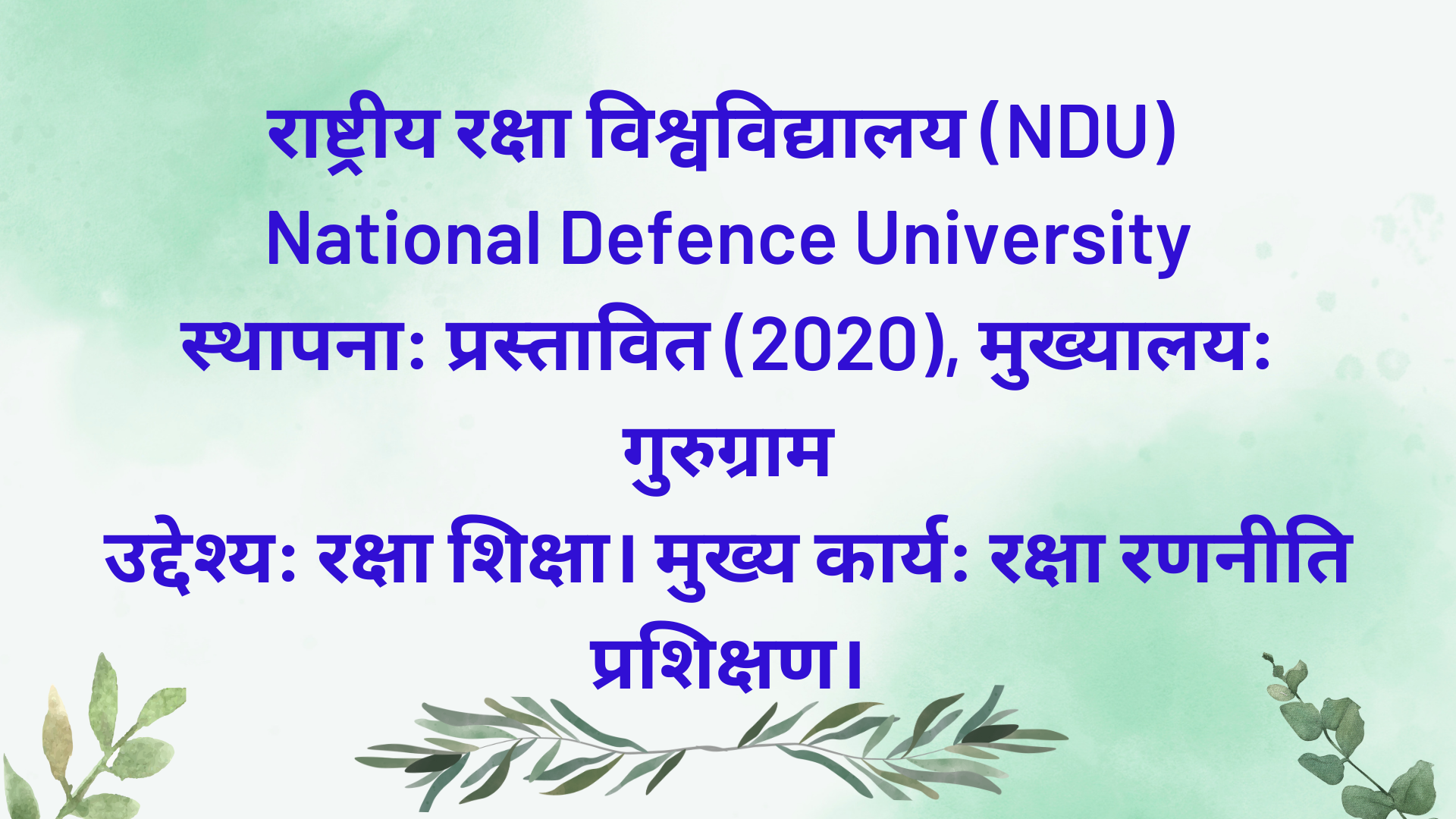 राष्ट्रीय रक्षा विश्वविद्यालय (NDU) National Defence University