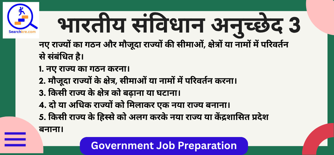भारतीय संविधान का अनुच्छेद 3: नए राज्यों का गठन और मौजूदा राज्यों की सीमाओं, क्षेत्रों या नामों में परिवर्तन से संबंधित है।