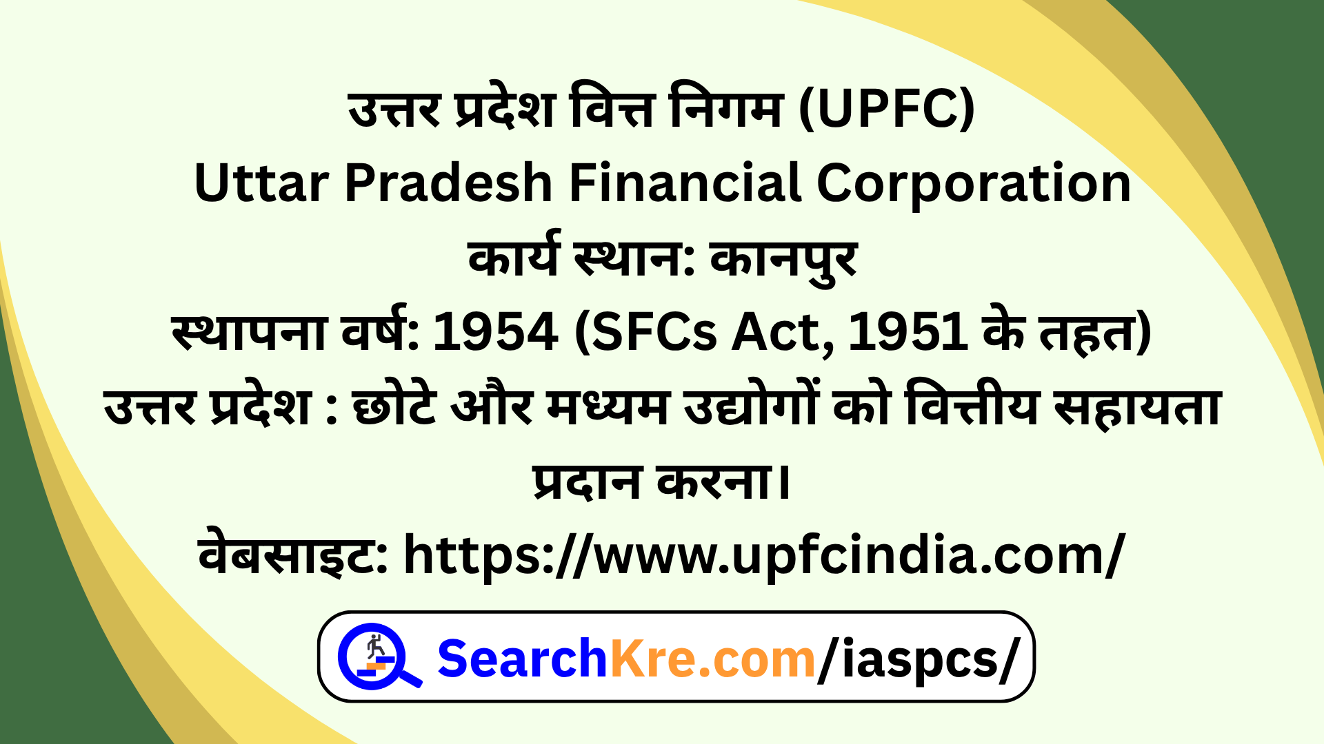 उत्तर प्रदेश वित्त निगम (UPFC) Uttar Pradesh Financial Corporation