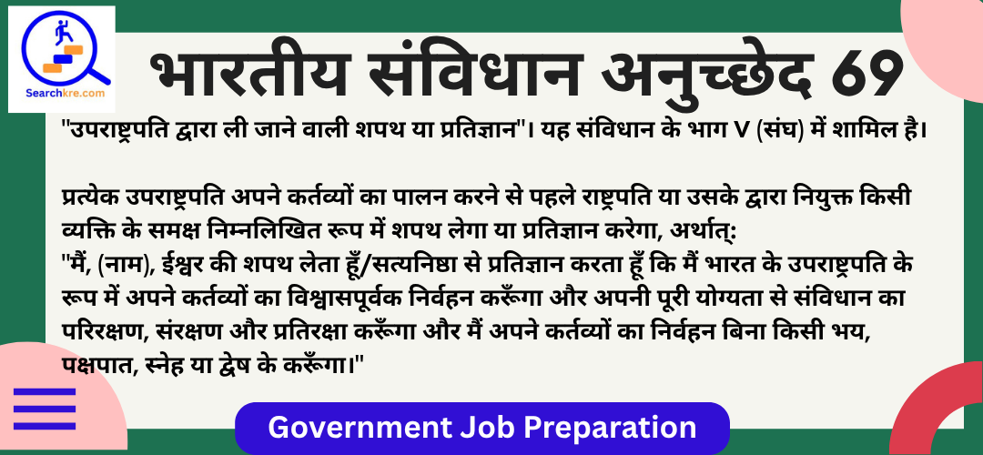 अनुच्छेद 69 का शीर्षक है "उपराष्ट्रपति द्वारा ली जाने वाली शपथ या प्रतिज्ञान"। यह संविधान के भाग V (संघ) में शामिल है।