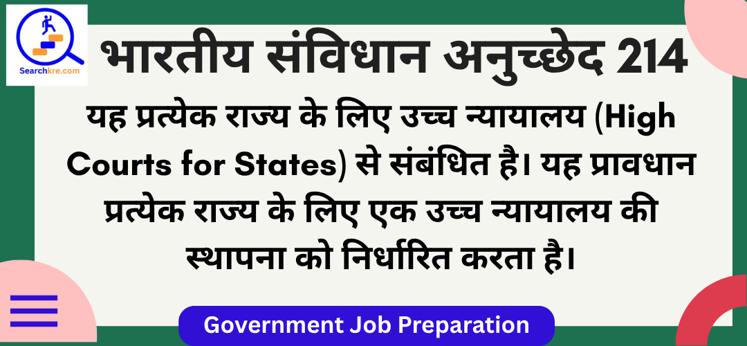 अनुच्छेद 214 भारतीय संविधान के भाग VI(राज्य) के अंतर्गत अध्याय V(राज्य में उच्च न्यायालय) में आता है। यह प्रत्येक राज्य के लिए उच्च न्यायालय(High Courts for States) से संबंधित है। यह प्रावधान प्रत्येक राज्य के लिए एक उच्च न्यायालय की स्थापना को निर्धारित करता है।