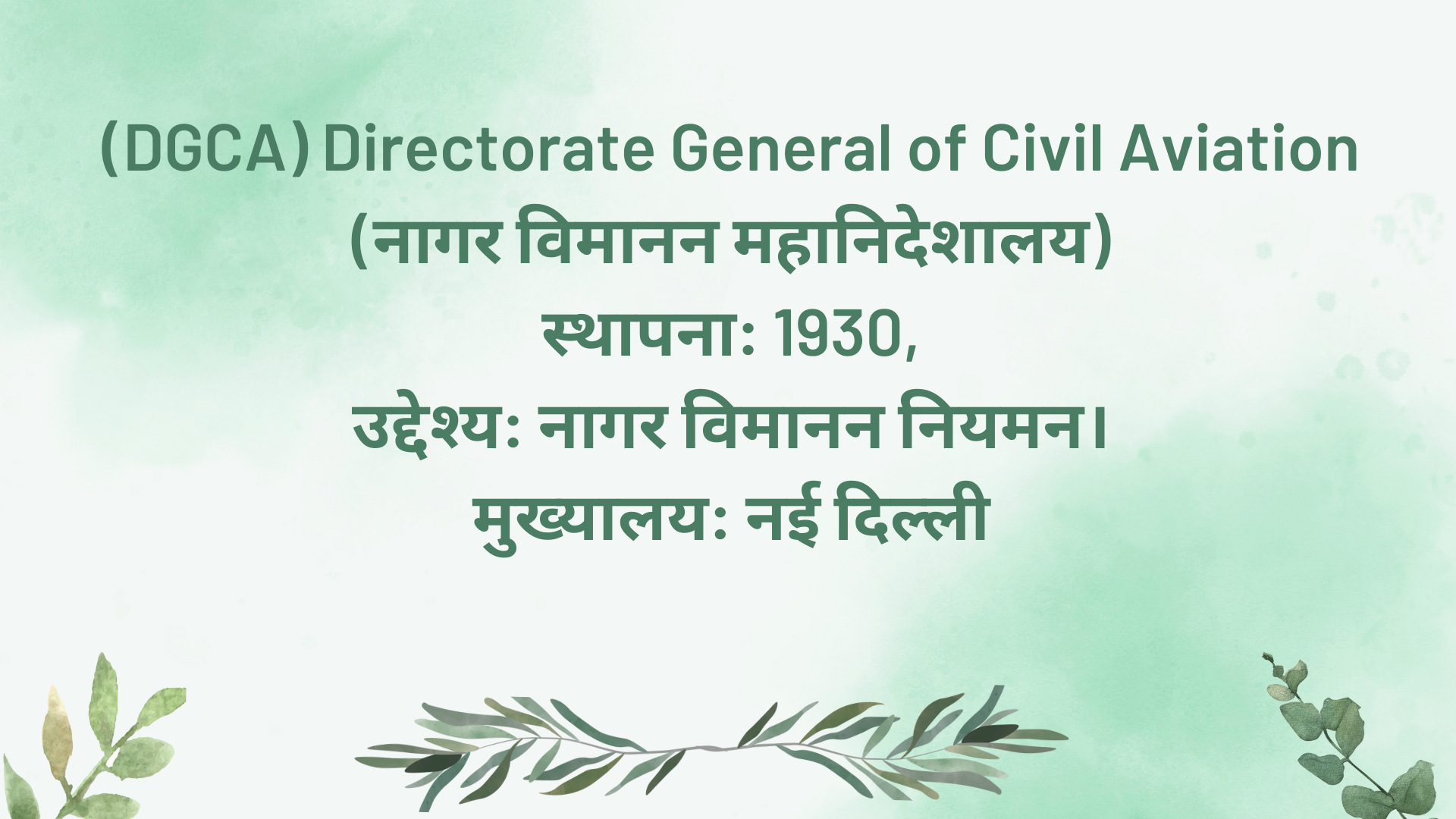 (DGCA) Directorate General of Civil Aviation (नागर विमानन महानिदेशालय)