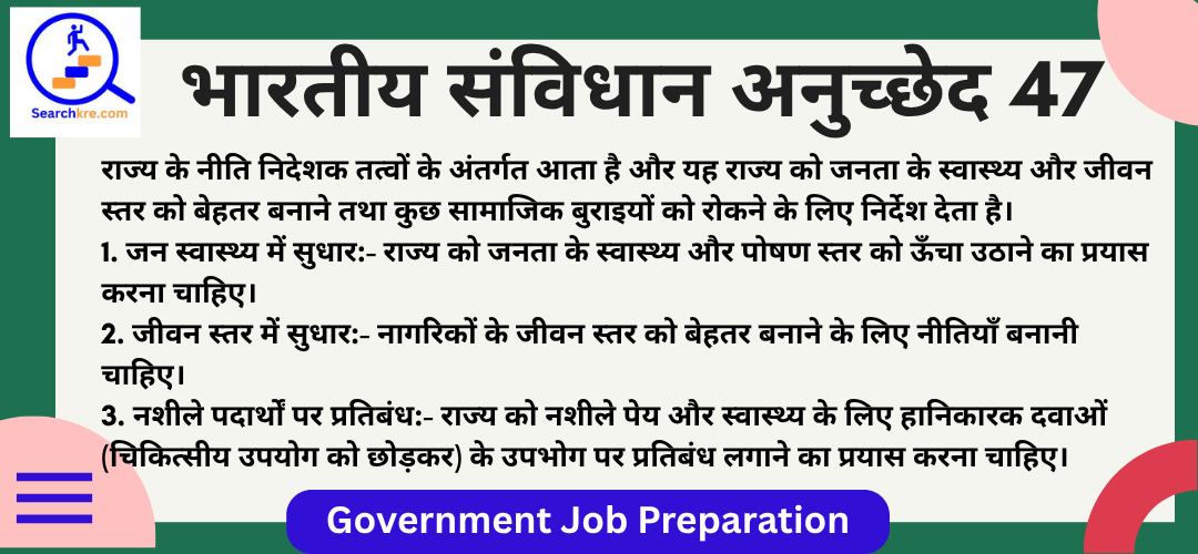 भारतीय संविधान का अनुच्छेद 47 में निम्नलिखित प्रावधान शामिल हैं:
