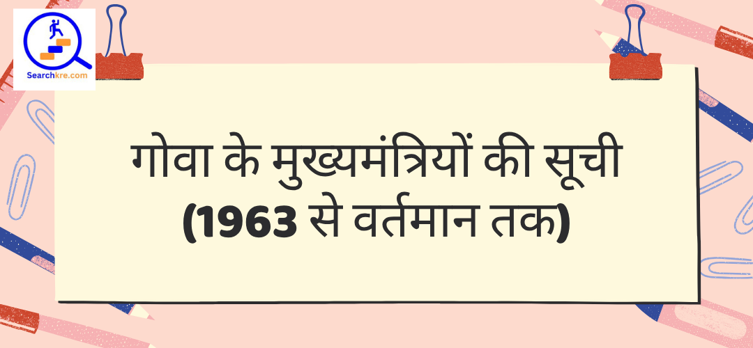 गोवा Goa के मुख्यमंत्रियों की सूची (1963 से वर्तमान तक)